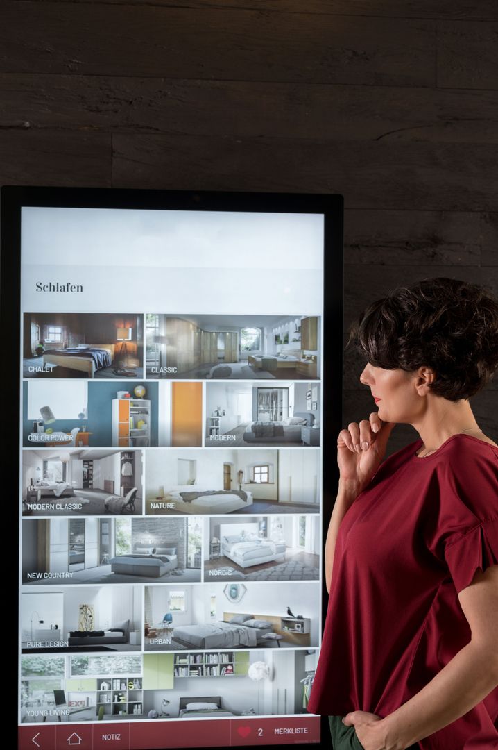 Sie ist interaktiv, intelligent und unendlich inspirierend: Wir sprechen von eVA, unserem digitalen Beratungstool. Mit eVA schaffen wir eine ideale Kombination aus zwei Welten. Die Produkte in unserem Schauraum sorgen für das haptische Erlebnis, und für Abwechslung in Echtzeit sorgt unser digitaler Schauraum.